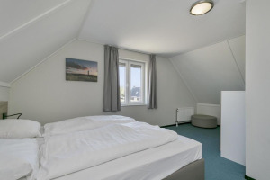 De living heeft evenals de gehele beneden verdieping een handige strandlook stenen vloer en veel glas, helemaal tot op de grond, dus binnen/buiten is één op één hier. De living is L-vormig en heeft een handige indeling. De keuken, die in een robuuste houtlook is uitgevoerd, heeft alle apparatuur die u nodig heeft. Geen zin om te koken is hier geen probleem want u kunt terecht in de strandtenten of het uitstekende restaurant op het park, maar de volgende apparatuur is aanwezig; een kookplaat, een combi oven/magnetron, een riant werkblad en natuurlijk een vaatwasser. Alle inventaris wordt meegeleverd. Op de etage vindt u twee riante slaapkamers en een tweede badkamer. De badkamer is ingericht met een ligbad met gecombineerde douche, wastafel, hangtoilet en een groot Velux dakraam.